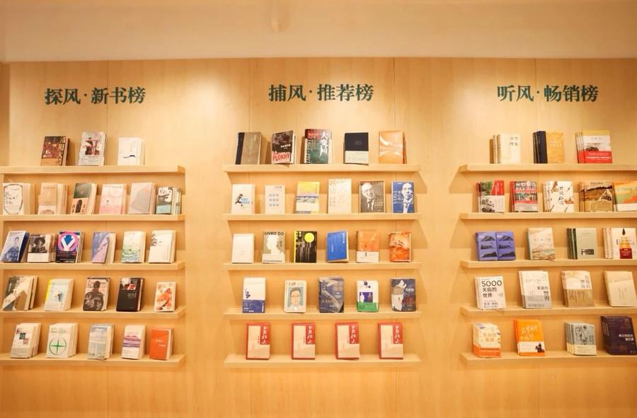 书店的一大特色是二楼入口处的12个专题图书展陈,包括格物致知、知时阅世、何以中国、吾土吾民、人类群星闪耀时、经世济民、技术与商业、社会与自我、思维与逻辑、阅读与写作、人与美、人与工作。这些专题及图书都是丁永勋精心策划与挑选的,是“经典的、经过时间和大范围人群检验的书籍”,会定期大更新,不定期小更新。另外,在书店收银台对面,还有“探风·新书榜”“捕风·推荐榜”“听风·畅销榜”三个带有风入松特色的图书榜单。