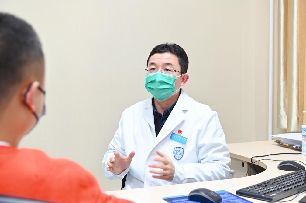 北京大学人民医院临床营养科主任柳鹏为患者讲解痛风饮食注意事项。(北京大学人民医院供图)