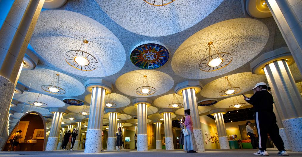 高迪建筑作为浪漫视觉盛宴和理性科学实验的结合体,融合了自然元素、传统技术和现代科学,创造出一种独特的建筑语言。高迪一生设计过许多作品,其中17处被西班牙列为国家级文物。在本次展览中,观众仿佛步入奇异瑰丽的“高迪世界”,可近距离一窥金盏花图案瓷砖装点的“文森之家”,拥有海浪般波形外立面的“米拉之家”,以及顺势而建的古埃尔公园等建筑奇观。