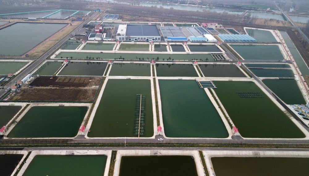 位于山东省微山县的微山湖现代渔业产业园(2024年3月14日摄,无人机照片)。新华社记者 徐速绘 摄