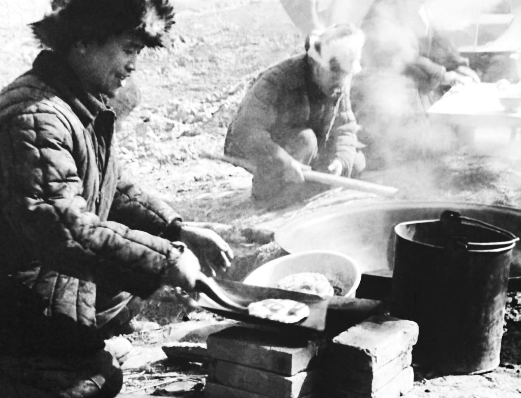 20世纪七十年代,大庆油田钻井工人在严冬里进行作业。
