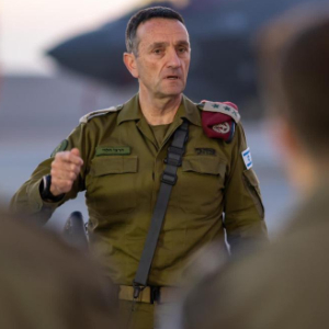 4月15日,以色列国防军总参谋长哈莱维在以色列南部的内瓦提姆空军基地讲话。哈莱维15日表示,伊朗对以色列发动的导弹和无人机袭击“史无前例”,将“遭到回应”。新华社发(以色列国防军供图)