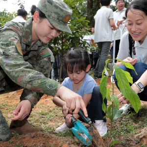 新华社香港4月20日电(记者孟佳)中国人民解放军驻香港部队200余名官兵代表20日前往香港西贡蕉坑参加香港植树日活动,与香港市民一同种下片片新绿,建设美丽香港。