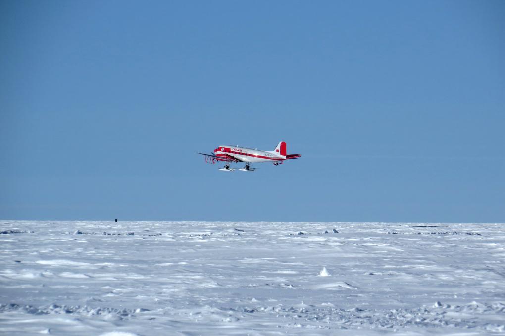 我国“雪鹰601”固定翼飞机在南极冰盖进行冰下湖探测调查。新华社发