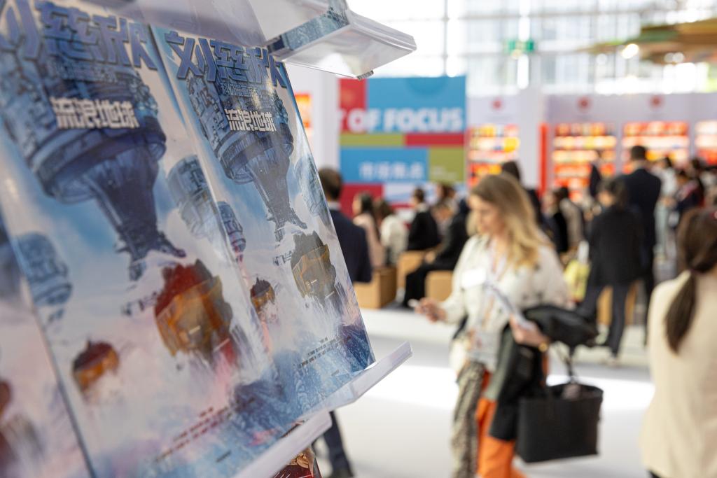 4月8日,人们在意大利博洛尼亚国际童书展中国展区参观。新华社记者 李京 摄