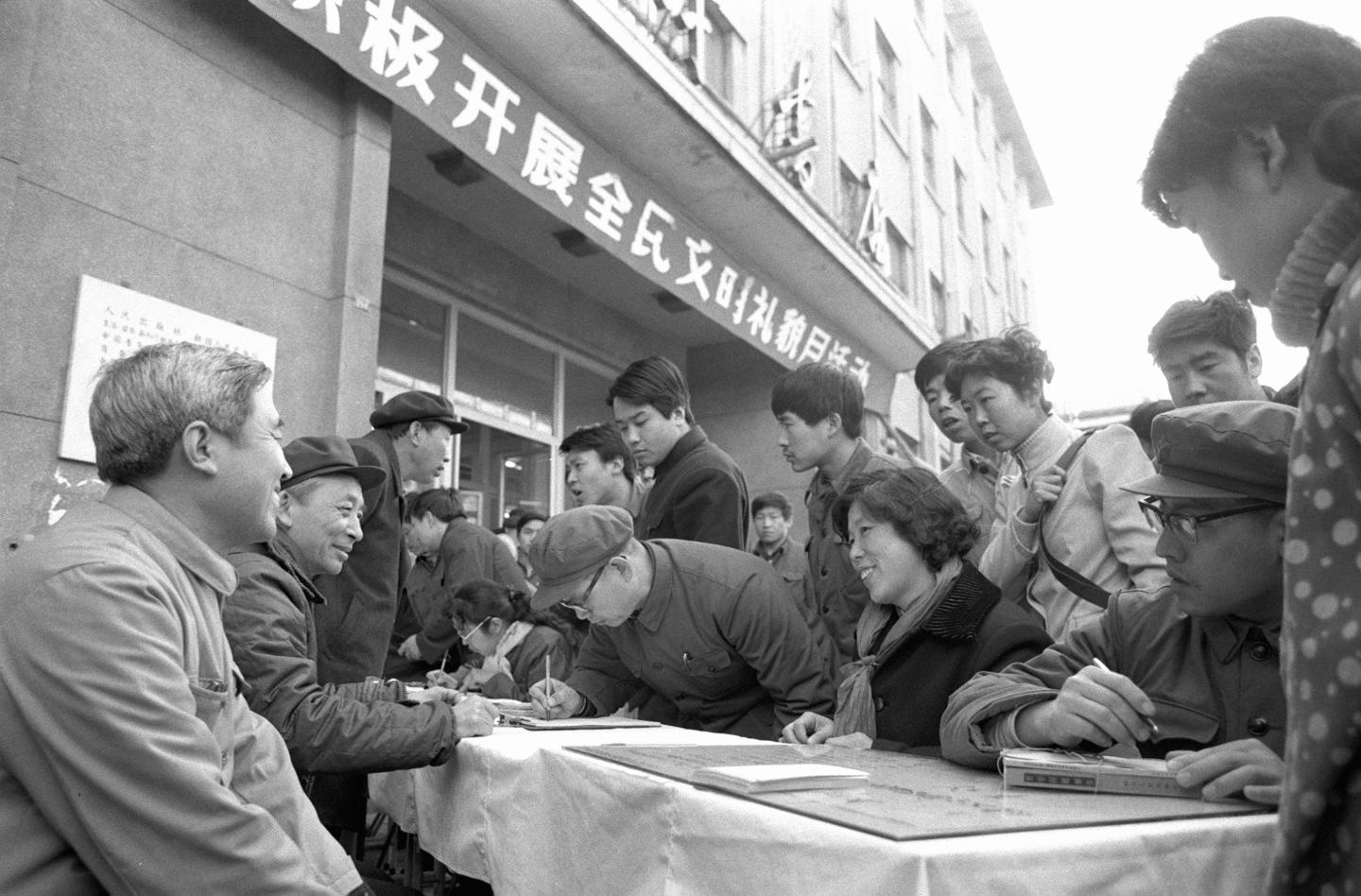 1983年3月,北京市新华书店在王府井大街设立读者接待站,十多家书店经理在这里直接听取群众对图书发行工作的意见。读者可以当面提出问题,也可以订购书刊。