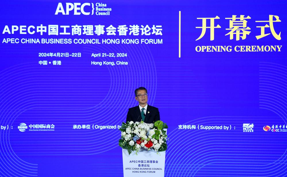 4月22日拍摄的2024年APEC中国工商理事会香港论坛开幕式现场。新华社记者 陈铎 摄