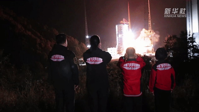 “5、4、3、2、1”,当倒数时刻响起,一声“点火!”令下,浓烟滚滚中,火箭底部发出耀眼光芒,将夜空照亮。火箭直冲云霄,发出震耳欲聋的巨响,无数目光追逐着不断升空的火箭。