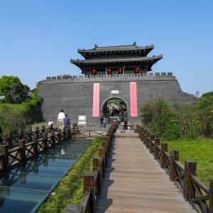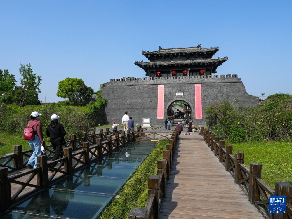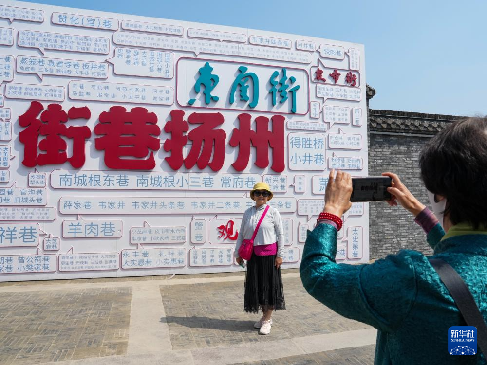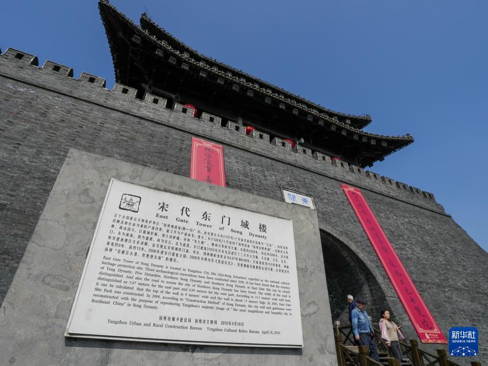 4月22日,游客在扬州东关街东门城楼休闲游玩。