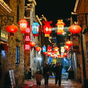 要体验西津渡的美,最好的方式是夜游。夜幕降临、华灯初上,屋檐上挂着的灯笼亮起点点红光,沧桑古街变得朦胧而神秘,仿佛回到了舟楫交织、车水马龙的古代。沿着西津渡的“五十三坡”拾级而上,灯火点点中,行路更添一份古意。