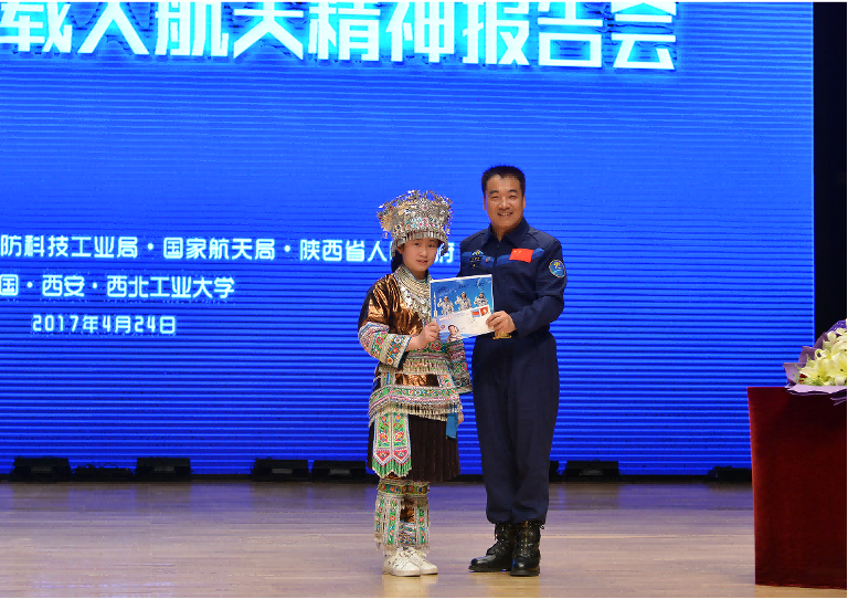 2017年4月24日,韦知月和来自广西融水、陕西渭南等地区的25名中小学生应邀走进西北工业大学,参加第二个“中国航天日”全国主会场的系列活动。