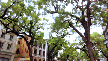 广州沙面大街上绿树成荫、鲜花盛开(4月11日摄)。