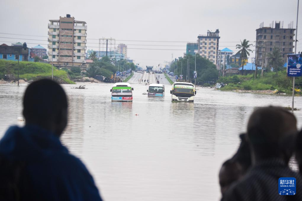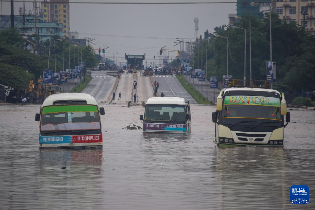 4月25日,坦桑尼亚达累斯萨拉姆一区域被洪水淹没。新华社发(赫尔曼·埃马纽埃尔摄)
