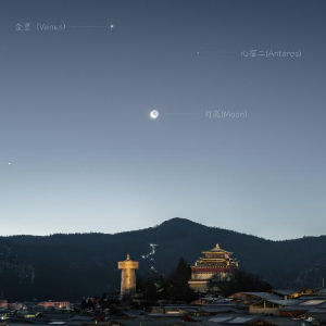 云南星空摄影爱好者张茂海2023年1月9日在云南迪庆拍摄的心宿二伴月。(本人供图)