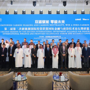 本次会议由中国能建国际集团主办,由新能源国际投资联盟与隆基绿能科技股份有限公司、天合光能有限公司、阳光电源股份有限公司和江苏中信博新能源科技股份有限公司共同承办。来自沙特政府部门、企业和机构的代表参会。