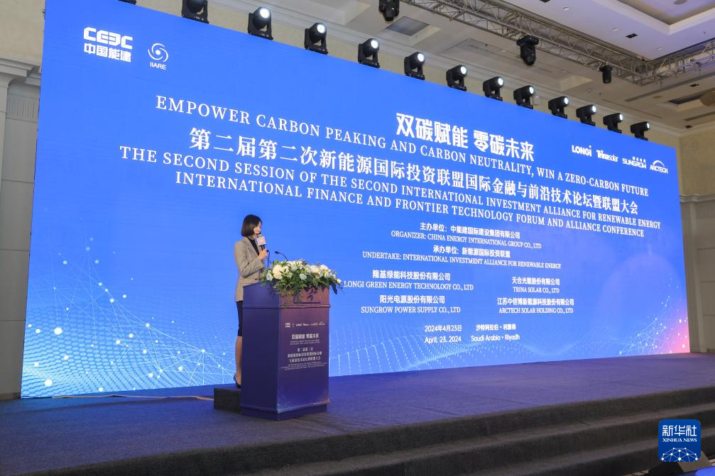 这是4月23日在沙特阿拉伯首都利雅得拍摄的新能源国际投资联盟大会开幕活动现场。新华社发(中国能建国际集团供图)