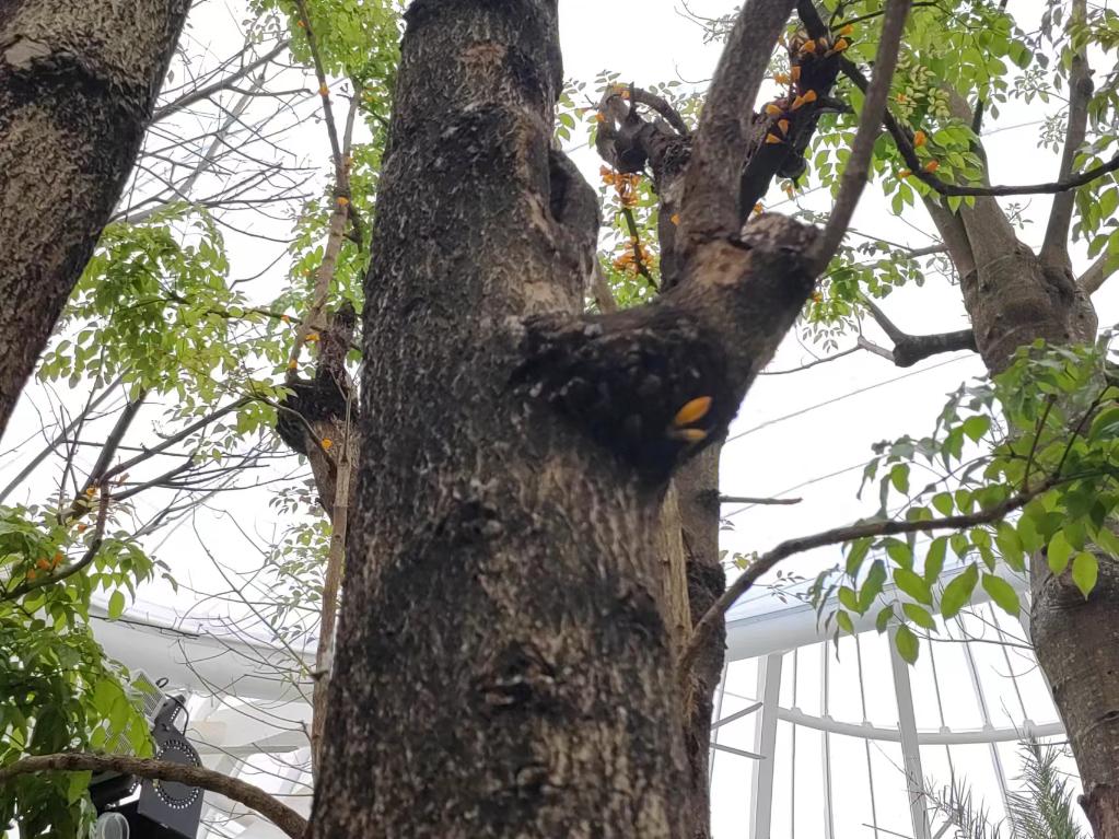 漫步在温室植物馆内,还可以看到热带雨林的植物奇观——“老茎生花”。“‘老茎生花’又叫火烧花。”潘宏磊告诉记者,“花开满枝头”“枝头硕果累累”是大家的一般印象,然而火烧花却反其道而行之,将花果从枝头挪到“老茎”上面,非常有趣。