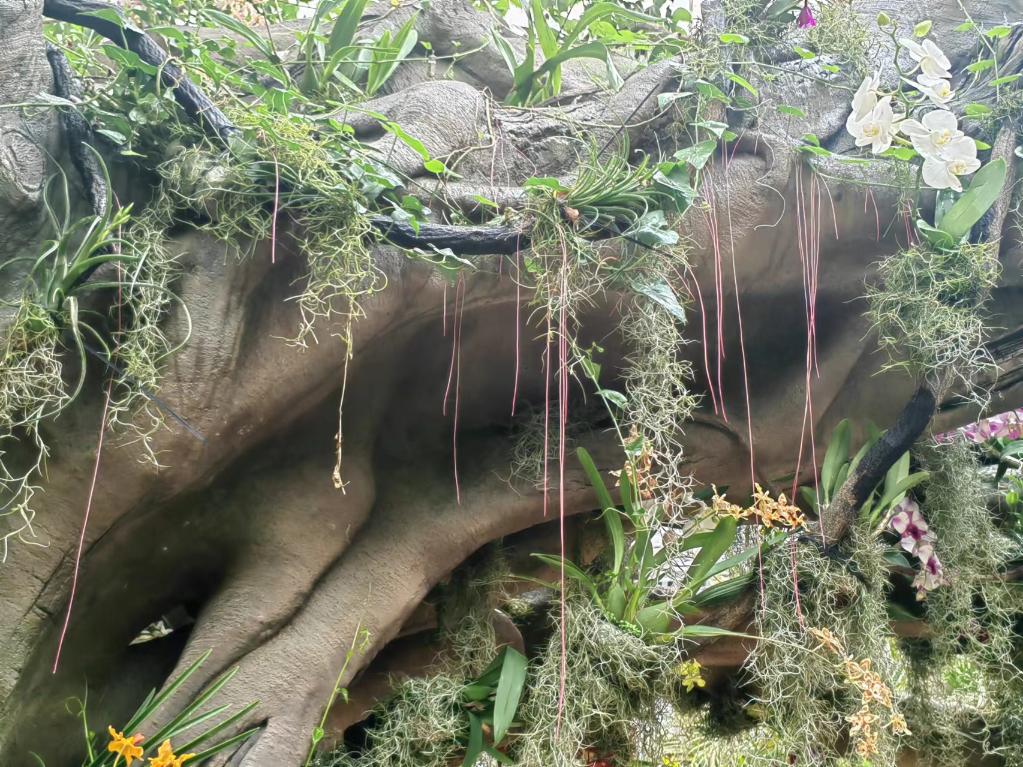 幽静的小溪、飞泻的瀑布、参天的大树、缠绕的藤萝……走进成都世园会主会场的温室植物馆,高大乔木与低矮灌木和谐共生,这里不仅种植了200余种热带植物,还有桫椤、神秘果、马达加斯加猴面包树、嘉宝果、锦屏藤等“神奇植物”,空气中弥漫着湿润的泥土味道,阳光透过茂密的枝叶倾泻而下,仿佛走进了一个“热带雨林”。