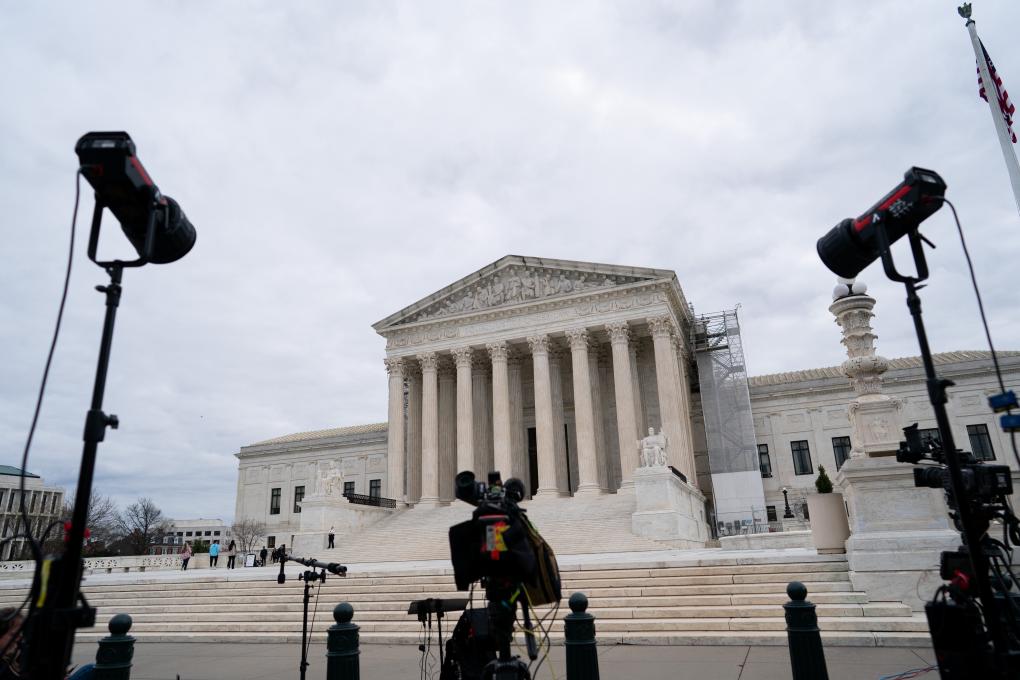 3月4日,媒体在美国华盛顿的美国联邦最高法院前报道。新华社记者刘杰摄