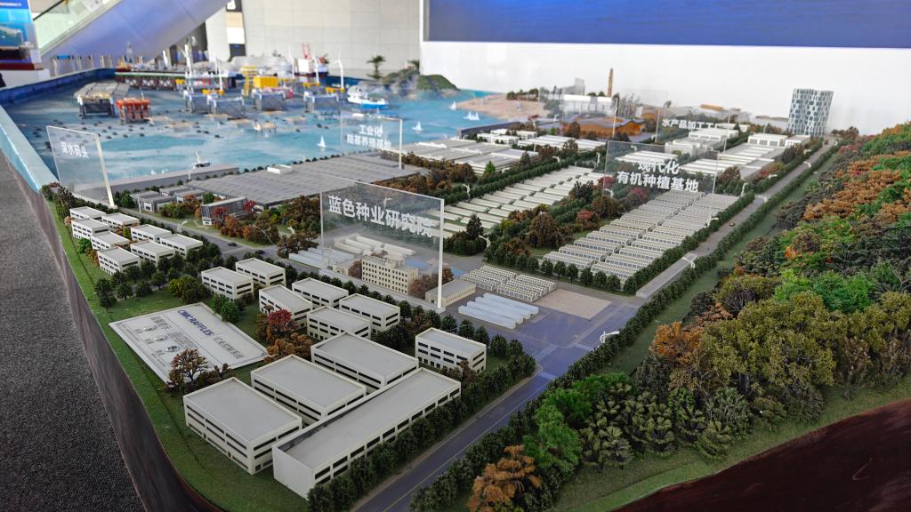 中集来福士海洋科技集团有限公司展示的涉海产业模型。新华社记者萧海川 摄