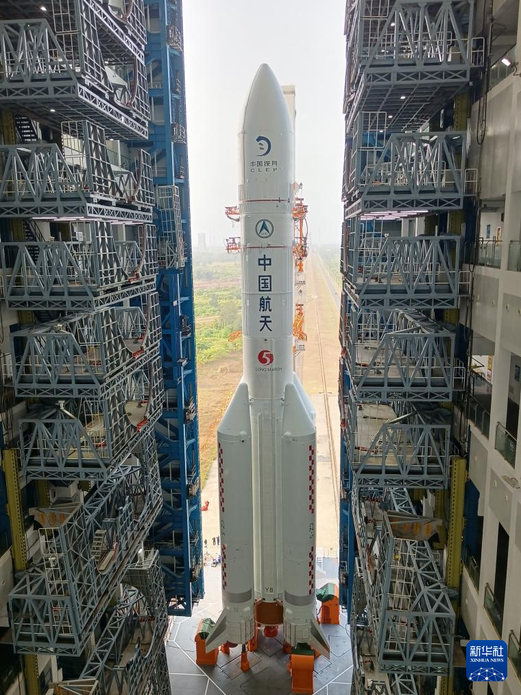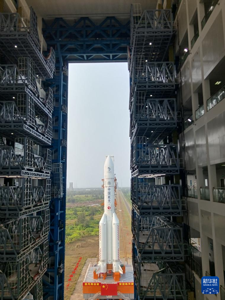 嫦娥六号任务器箭组合体完成垂直转运 计划5月初择机发射-新华网