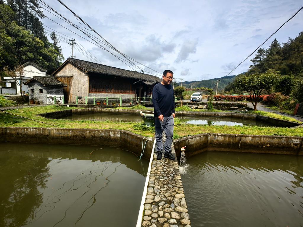 在黄山休宁泉水鱼农民专业合作社负责人余欣荣的泉水鱼养殖基地里,30多个鱼池依山而建,山涧清泉汩汩流过,通过开展尾水处理工程,对养殖的尾水进行过滤、沉淀和净化等工序后,再排入河流,实现了“以水养鱼、以鱼保水”的生态循环。