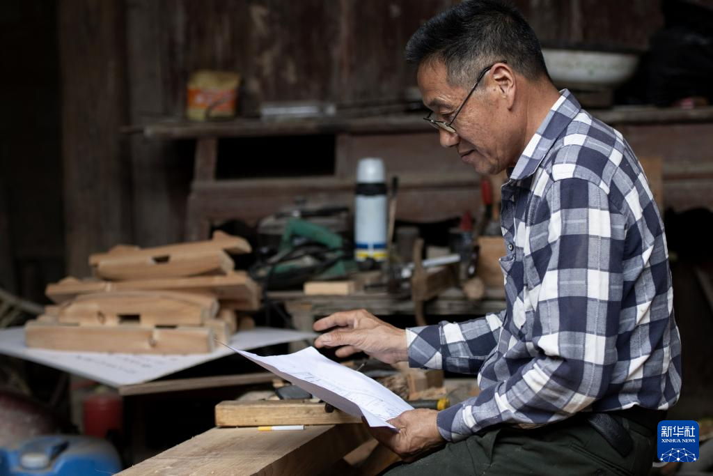 在泰宁县尚书巷历史文化街区内,专业古建筑修缮工作者进行修缮工作(4月19日摄)。