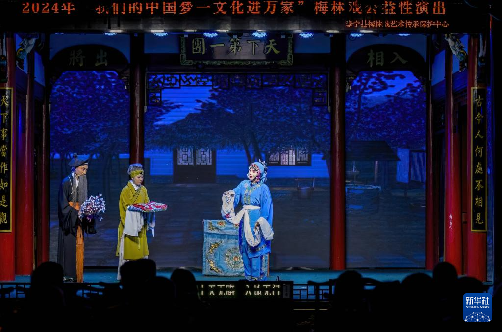 在泰宁县尚书巷历史文化街区梅林戏展示中心,演员为观众表演梅林戏(4月19日摄)。梅林戏俗称土戏,源于清乾隆年间,是徽剧与当地民间小调、客家文化融合而成的新剧种,具有浓厚的地方特色,名列中国首批国家级非物质文化遗产。