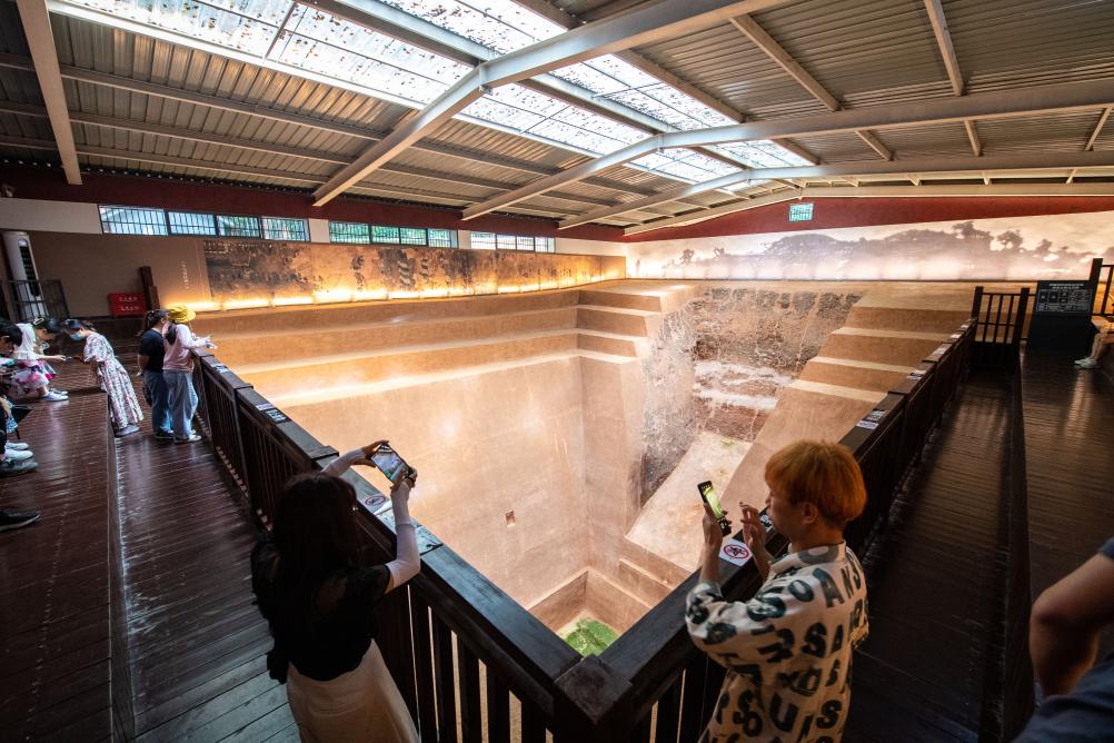 这是2023年6月9日,游客在参观位于湖南省长沙市的马王堆汉墓墓坑遗址。新华社记者陈思汗 摄