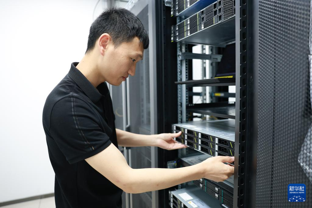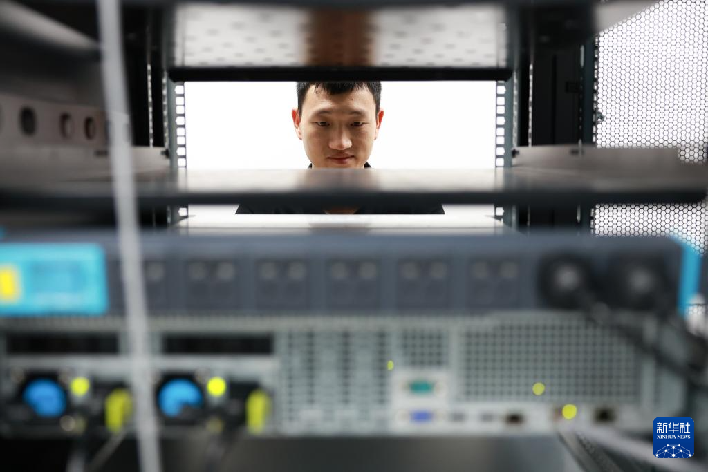 田超在位于贵阳市观山湖区的公司机房内工作(4月21日摄)。新华社记者 刘续 摄