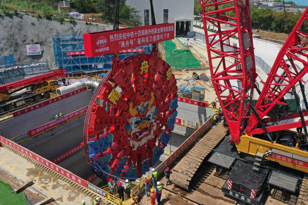 直径14.57米、长135米、总重量4350吨——不久前下线的超大直径盾构机“定海号”“甬舟号”,如同两条巨大的“地下蛟龙”,正在世界最长海底高铁隧道——宁波至舟山铁路金塘海底隧道安装调试,完成后将于5月份从隧道两端相向施工、掘地穿海。
