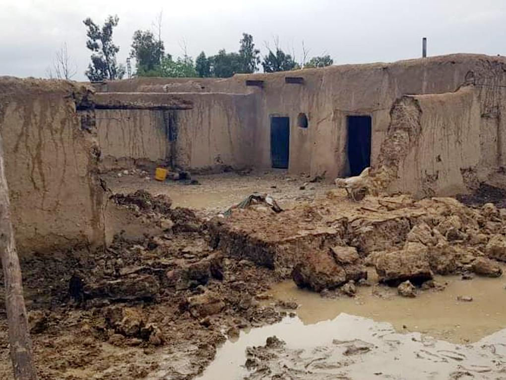 4月17日,在巴基斯坦俾路支省,房屋建筑因暴雨而损坏(手机照片)。新华社发
