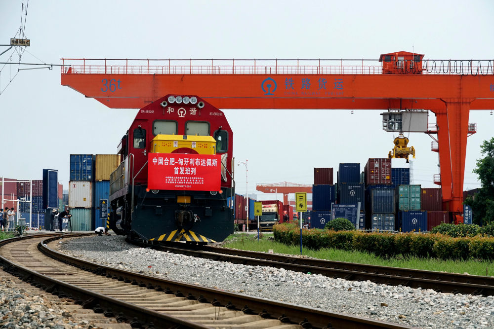 2022年7月29日,合肥至匈牙利布达佩斯的中欧班列从合肥北站物流基地驶出,标志着合肥中欧班列通往匈牙利布达佩斯的线路正式开通。新华社发(席静玉摄)