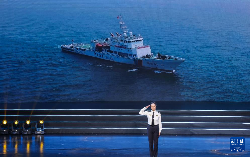 这是中华人民共和国浦东海事局海区海巡执法大队副大队长、“海巡01”轮船长詹春珮在进行宣讲(4月29日摄)。新华社记者 殷刚 摄pagebreak