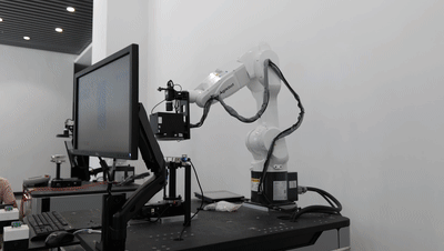 抬起机械臂对着检测台上的“待检品”