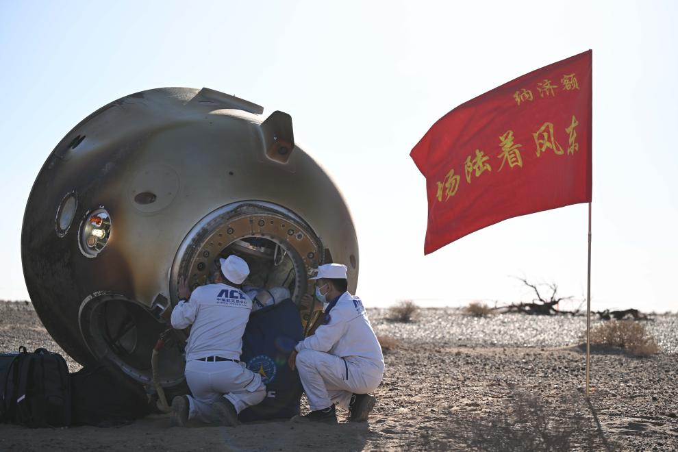 2024年4月30日,神舟十七号载人飞船返回舱在东风着陆场成功着陆。