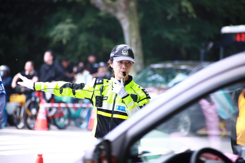 5月1日,姜子璇在西湖景区指挥疏导交通。(杭州交警供图)