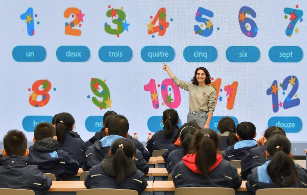 图为2023年12月18日,在西安后宰门小学举行的中法校园文化周法语语言沙龙活动。 新华社记者 刘潇 摄