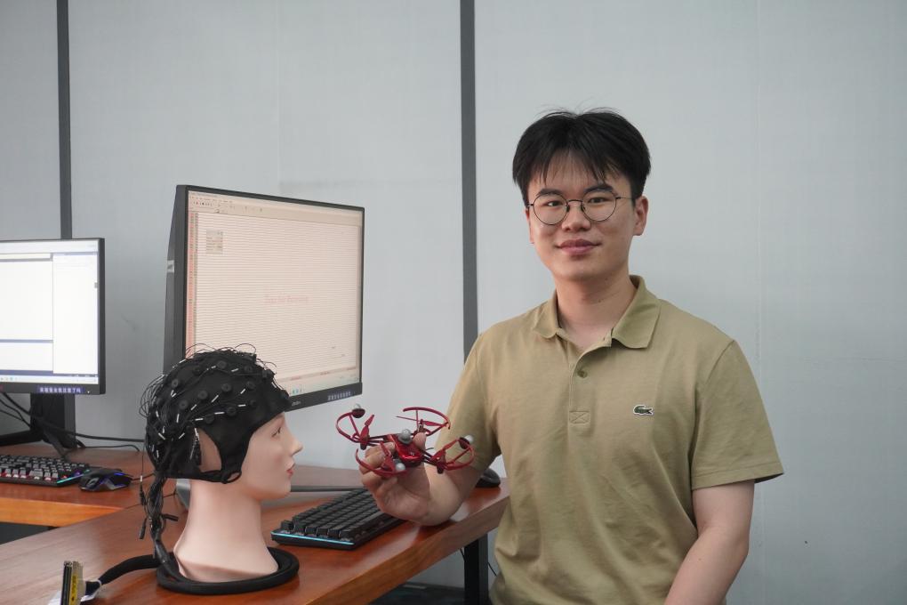 同样26岁的梅杰,也是从硕士阶段加入天津大学神经工程团队的科研项目,并通过近半年的刻苦攻关,让“脑控无人机”成为现实——戴上脑电极帽,紧盯电脑屏,无需双手操作,通过“意念”就可以控制无人机稳定穿越指定区域。