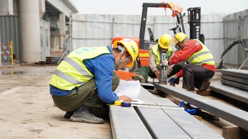 “五一”期间,由中铁建工集团承建的沪苏湖铁路站房V标项目练塘站现场,200多名建设者干劲十足,6辆近30米高的曲臂车挥舞着车臂,有序进行主龙骨立柱安装;多台12米高的剪刀车来回穿梭,次龙骨横梁精准入位;加工区域工人在进行预安装材料的准备工作。目前,练塘站桥下站房和线侧站房主体结构施工完成,站房已全面进入装饰装修阶段,正在进行砌体结构施工等。
