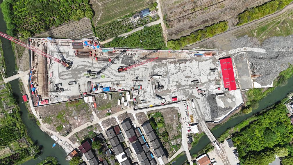 水乡客厅站向东南驾车约20公里,就到了长三角另一条“大动脉”沪苏湖铁路练塘站的建设现场。