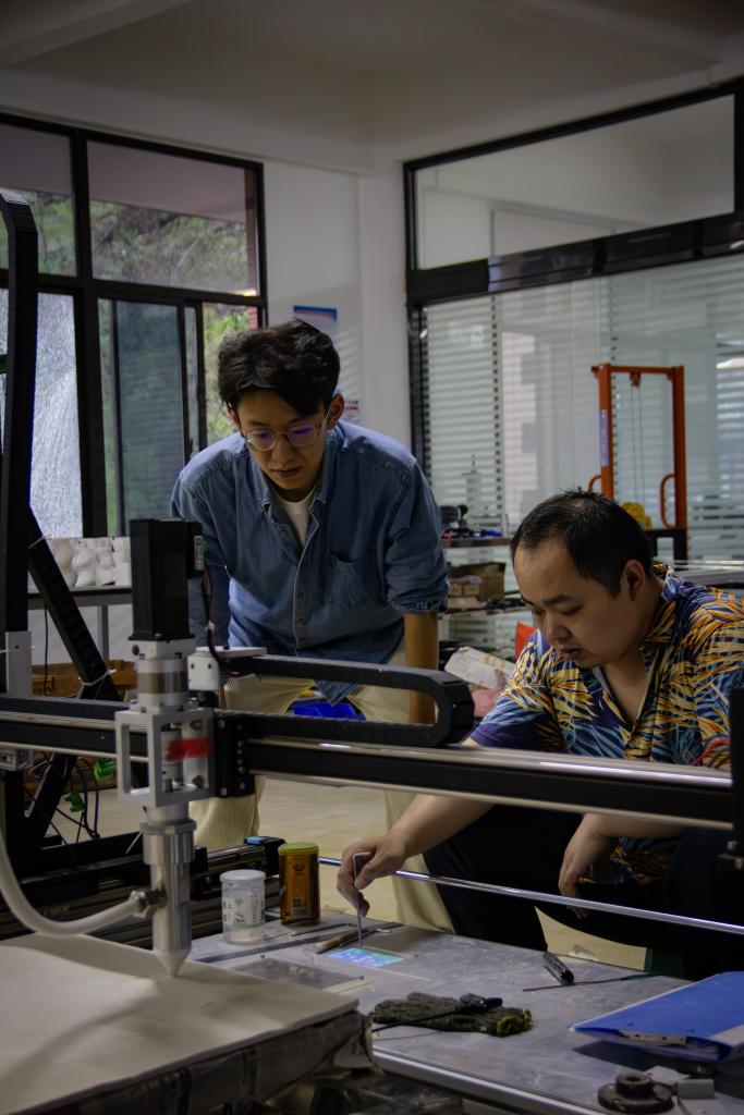 苏泓亦正与技术人员调试3D打印机。新华社发(受访者供图)