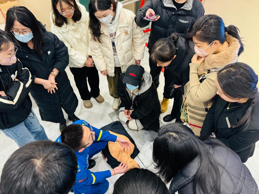 合肥夜校学生向合肥蓝天救援队队员学习基础急救知识。(受访对象供图)