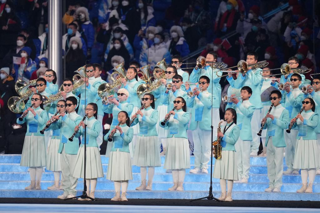 在北京2022年冬残奥会开幕式上,重庆市特殊教育中心扬帆管乐团参演团队演奏国际残奥委会会歌(2022年3月4日摄)。新华社记者吴壮 摄