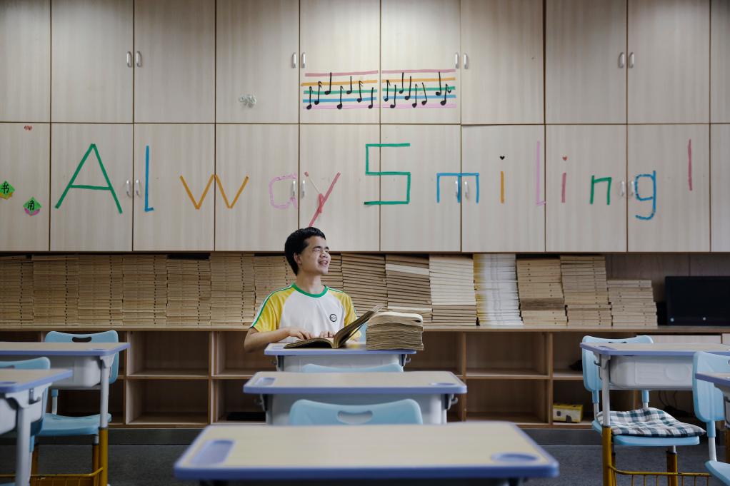 雷煜从此开始拿起相机,有意识地拍摄孩子们的学习和生活瞬间,希望用真实的影像记录改变家长的认知。他拍下的第一张照片,就是一个孩子坐在教室里摸着盲文书微笑。