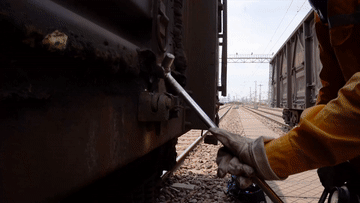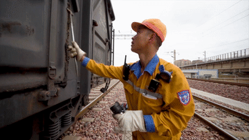 一趟货车有50余节车厢,长达500多米,货车检车员们需要分段开展作业,不停地弯腰、下蹲、探身,围绕车辆仔细检查每一个配件。