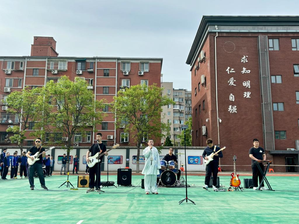 北京市盲人学校师生在该校2024年春季运动会上进行音乐表演。新华社记者 赵旭 摄