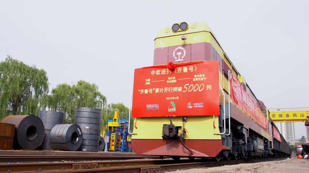 5月2日,随着一声汽笛响彻云霄,一列满载机械设备、炭黑、橡胶等货物的山东中欧班列从上合示范区多式联运中心发出。这趟班列运输的货物中,大部分是来自玲珑轮胎塞尔维亚工厂所需的模具及原材料。