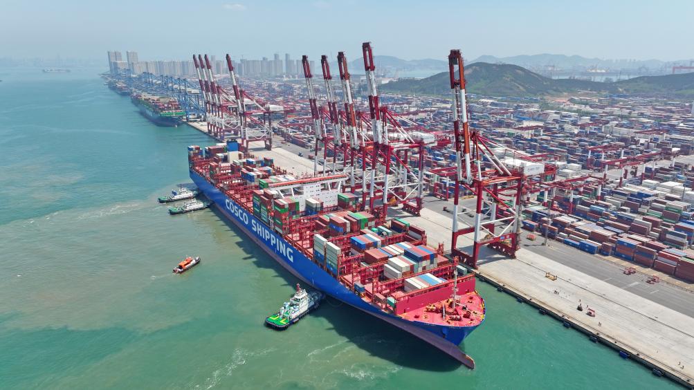 5月1日,“中远海运摩羯座”轮正在停靠青岛港。受访者供图