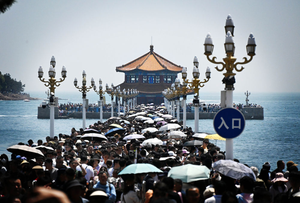 5月2日,游客在青岛市栈桥景区游玩。新华社记者 李紫恒摄